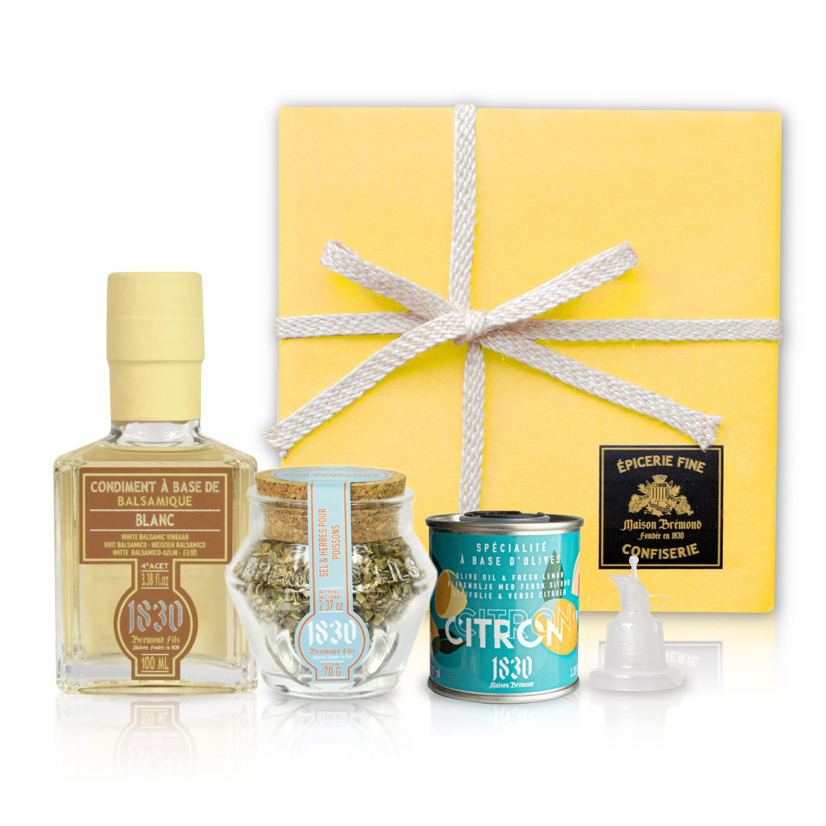 食卓を一気に、爽やかにプロヴァンサルにしてくれるセットです。メゾンブレモンド1830の調味料の中でも、人気が高く使いやすい調味料を合わせました。同梱されてあるレシピを参考にすれば、どなたでも簡単にお使いいただけます。